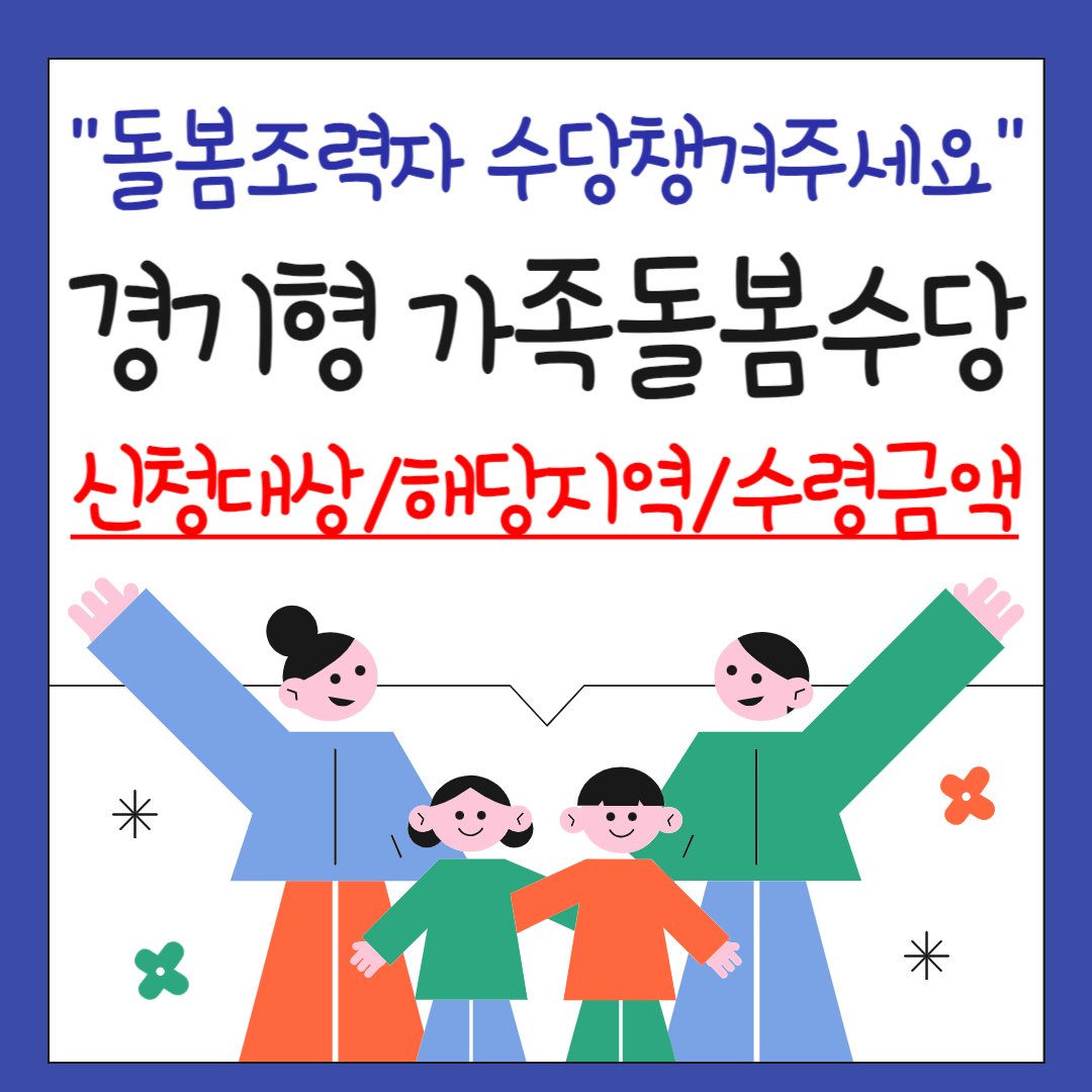 경기도에서 맞벌이가정의 육아부담을 완화하기 위해 만 24개월~48개월 미만 아동을 돌보는 양육자를 대상으로 가족 돌봄 수당 정책을 시행합니다. <정식 명칭. 경기형 가족 돌봄 수당>